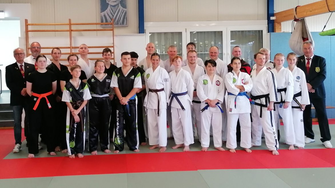 Das 5. Kadertraining des Jahres fand beim Judo-Club Achternmeer in Hundsmühlen bei Oldenburg statt. Geleitet wurde das Training wie gewohnt vom Bundestrainer Stefan Lange, der dieses Mal von Marina Bruchmann unterstützt wurde. Das Training war wieder in 2 Teile aufgeteilt, zuerst das Formenlaufen und anschließend das Kämpfen (Semikontakt / Pointfighting). Für beide Teile übernahm Marina Bruchmann das Aufwärmen, welches sie durchdacht und abwechslungsreich gestaltet hat. Als Hilfsmittel kamen hier unter anderem Bälle, Koordinationsleiter und Balance Pads zum Einsatz. Anschließend mussten die Teilnehmer ihre Formen präsentieren, welche nicht nur vom Bundestrainer, sondern auch von einigen anwesenden Kampfrichtern (darunter auch dem Bundeshauptkampfrichter), ausführlich bewertet wurden. Zum Abschluss der ersten Einheit wurde noch kurz der Untergrund gewechselt und zwar von der Mattenfläche auf den Turnhallenboden. Beide Untergründe haben nämlich für das Formenlaufen gewisse Vor- und Nachteile, worauf sich der Sportler einstellen muss. Im zweiten Teil, dem Kämpfen, übernahm Marina nach dem Aufwärmen auch einen großen Teil der Einheit und unterrichtete verschiedene Technikübungen wie den „Defensive Sidekick“, Doppeltritt-Kombinationen und Kontertechniken, sowie ein Szenariospielchen, bei dem der Partner nicht mehr alle Techniken einsetzen durfte. In der letzten Stunde des Trainings lag dann der Schwerpunkt beim Sparring. Das nächste Kadertaining findet am 14. September in Coesfeld statt.